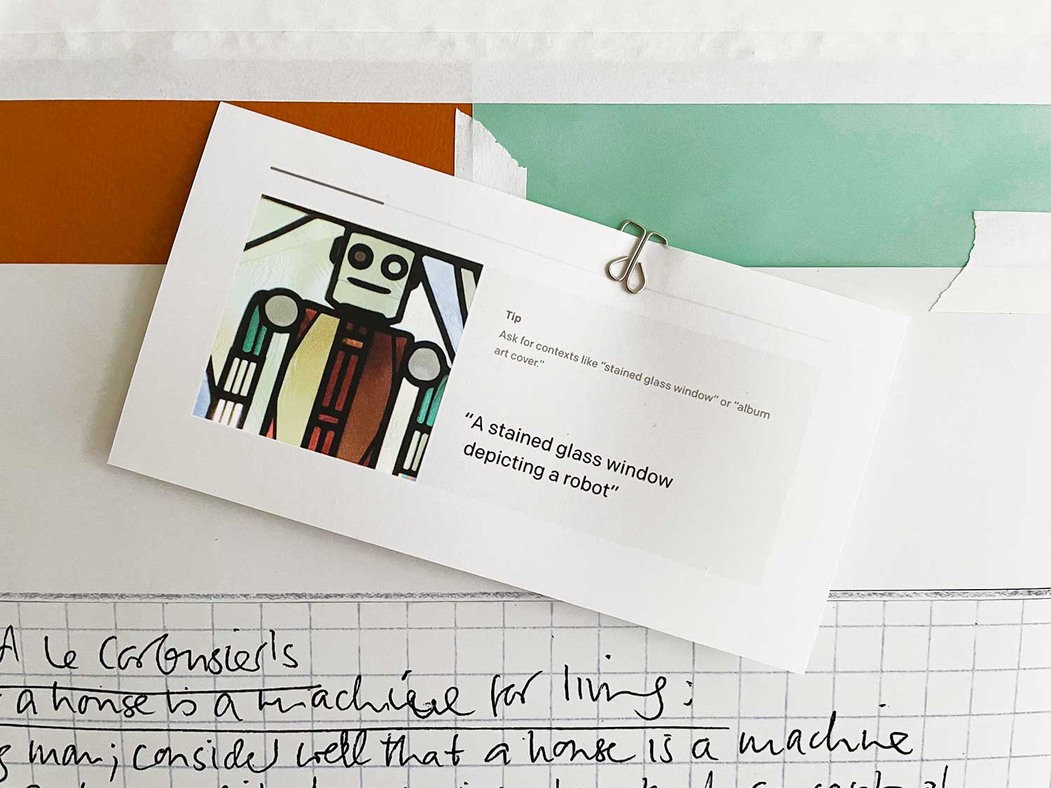 Interiority 2 (archival print of the first page of Frank Lloyd Wright’s “The Art and Craft of the Machine” with cutouts; yellow copy paper, foam board, plexiglass cubes, tape, pins, 12” x 15”)