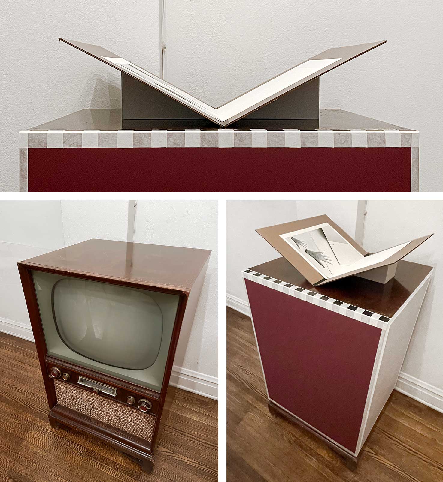 Period Piece - a temporary transformation of the resident's cabinet TV (colored archival boards, black and white artist tape, masking tape)