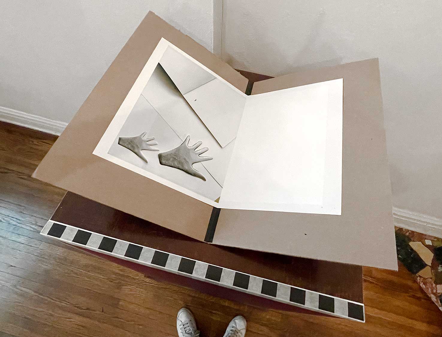 Untitled (Victorian Hands) (archival print, 12” x 17”, folded, archival paper, 13" x 19", folded, cardboard, grey board, 18”x 22” x 6”)